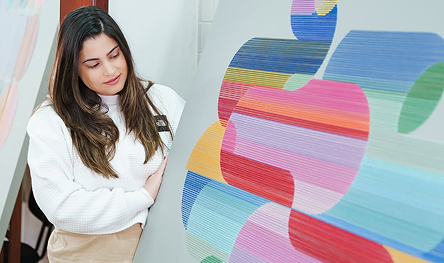 Su propuesta se basa en elaborar una obra que entrelace la afectividad y la intimidad del proceso del bordado y, el estudio matemático de las figuras geométricas. De esta manera, el resultado obtenido es un conjunto de piezas que revelan una técnica única de bordad, desarrollada por la propia artista que generan en el espectador sensaciones de movimiento, inspiradas en los trabajos de cinéticos de Soto y Cruz Diez.