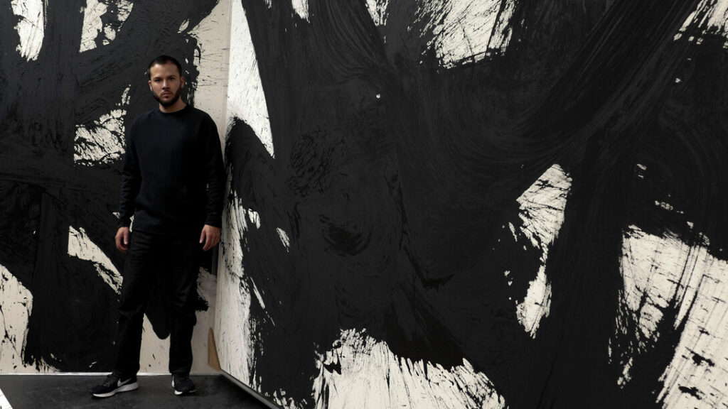 Nacido en Bogotá, Colombia, Santiago Parra ha construido una obra reconocida por sus trazos amplios y enérgicos, que transmiten una gran carga expresiva. Influenciado por el Expresionismo Abstracto, su trabajo evoca la fuerza gestual de artistas como Franz Kline y la intensidad gráfica de Richard Serra. Parra hace uso de la monocromía no solo para simplificar la paleta, sino para concentrar la atención en la interacción entre el movimiento y el espacio vacío, donde cada línea captura el instante del proceso creativo en su forma más pura.