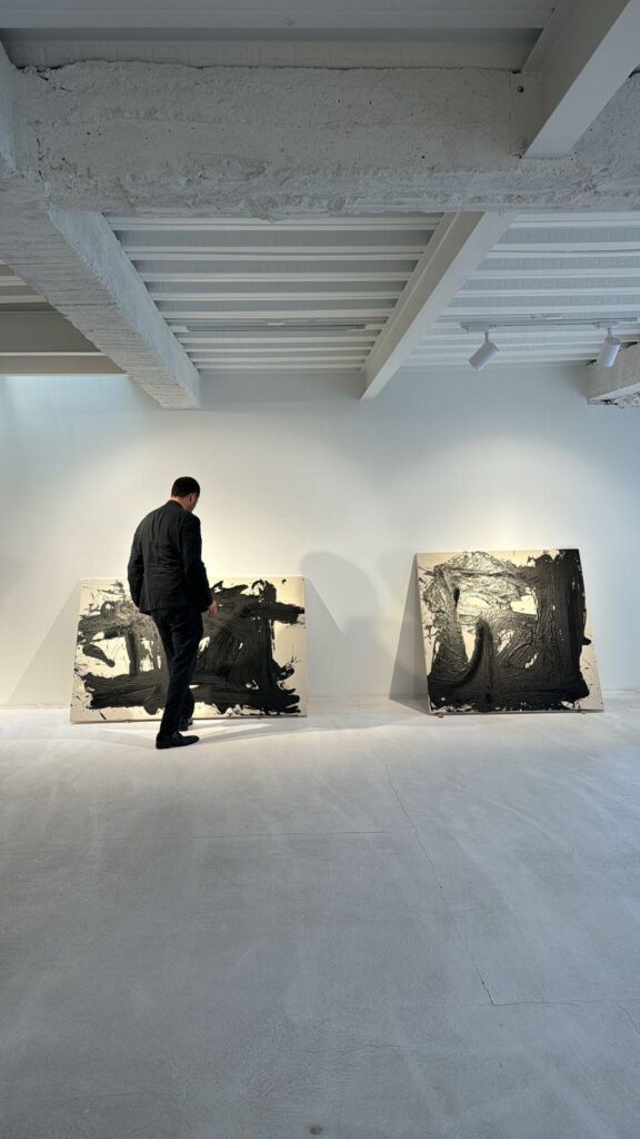 Sus piezas, de gran formato, capturan el gesto espontáneo del artista, al mismo tiempo que nos permiten reflexionar sobre el equilibrio entre control y caos en su creación. En cada obra de Santiago Parra, se nos ofrece un espacio para la contemplación, un lugar donde las formas y las líneas hablan de emociones humanas universales y de la búsqueda constante de sentido.