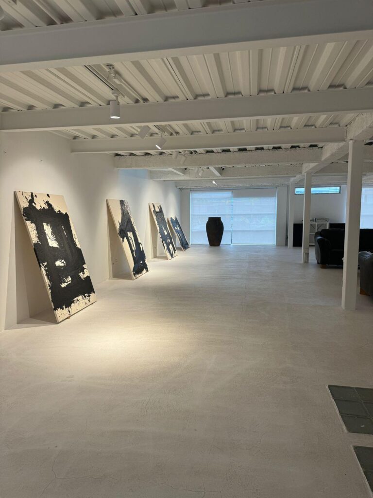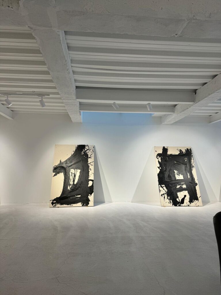 Las pinturas de Parra, realizadas en blanco y negro, son una exploración de la relación entre forma y vacío. El negro, siempre protagonista, surge de manera dominante en contraste con el fondo blanco, generando un diálogo visual que enfatiza la interacción entre presencia y ausencia. Sus pinceladas amplias y cargadas de pintura no solo llenan el espacio, sino que lo transforman, guiando al espectador por un recorrido sensorial que va desde la intensidad del trazo hasta la sutileza del vacío. Para Parra, el uso de estos dos colores es esencial; el blanco y negro no son simples elecciones cromáticas, sino herramientas que le permiten capturar la esencia del gesto y la energía del momento.